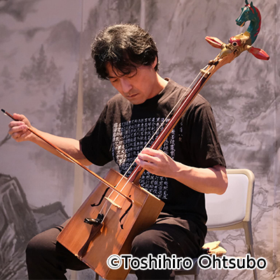 馬頭琴(モンゴルの弦楽器)、喉歌(一人二重唱)、ドシプルール(シベリア・トゥバの撥弦楽器)、ホムス(シベリア・サハの口琴)を演奏。ゴビの遊牧民奏者Y.ネルグイ(モンゴル国第一文化功労者)から馬頭琴の後継指名を受け伝統の継承に力を入れる一方で、野花南(w/嵯峨孝子)、タルバガン(w/等々力政彦)、おおたか静流とASIAN WINGSほか様々な形態の音楽ユニットで活動。カンテレ奏者あらひろことのデュオ RAUMAの1stアルバム「深い海」はフィンランドカンテレ協会「アルバム・オブ・ザ・イヤー2019」を受賞。
